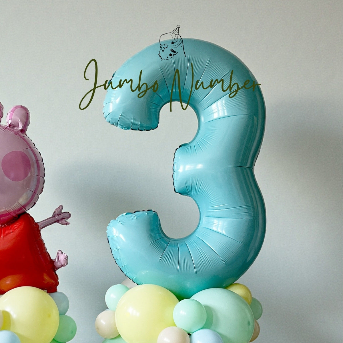 Peppa Pig Balloon Tower Set - licensed Peppa Pig balloon with light blue jumbo number, perfect for birthday parties and photo backdrops.